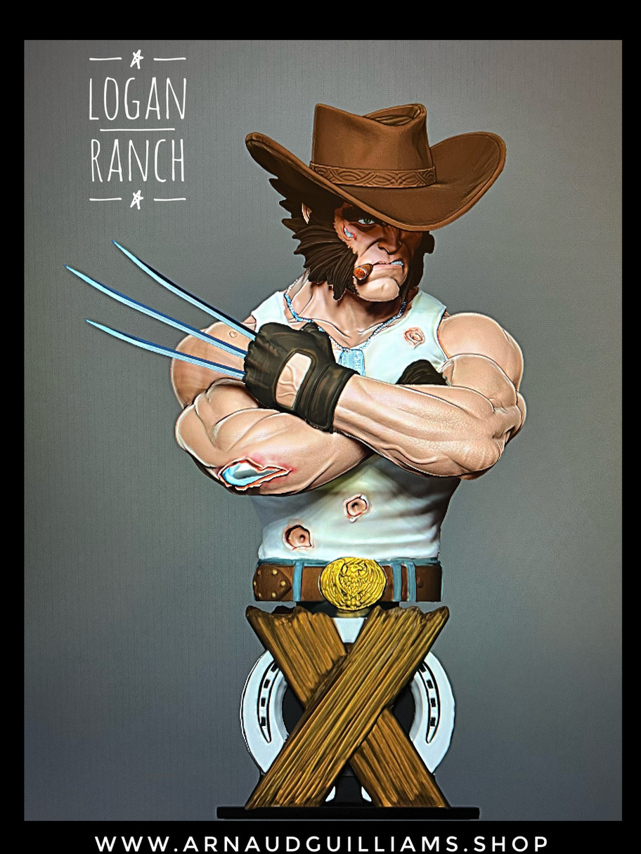 Ce buste à l'échelle 1/7e (15,5 cm), sculpté en ABS et résine PU, incarne Logan en tant que drifter des grandes étendues. Le chapeau de cowboy et le cigare au coin de la bouche évoquent les héros classiques du Western, annonçant une violence imminente sous une façade de calme. La base est un élément clé : un fer à cheval rouillé ancre le décor dans le ranch, tandis que les planches de bois croisées forment un "X" subtil, rappelant que même en exil, Logan reste un X-Man. Ce buste capture la vigilance usée de l'homme qui tente d'échapper à son passé, offrant un moment de calme avant que la tempête ne reprenne.(offert avec une Médaille Collector Logan ABS finition imitation bronze, avec un magnet et sa phrase culte gravée en relief.)